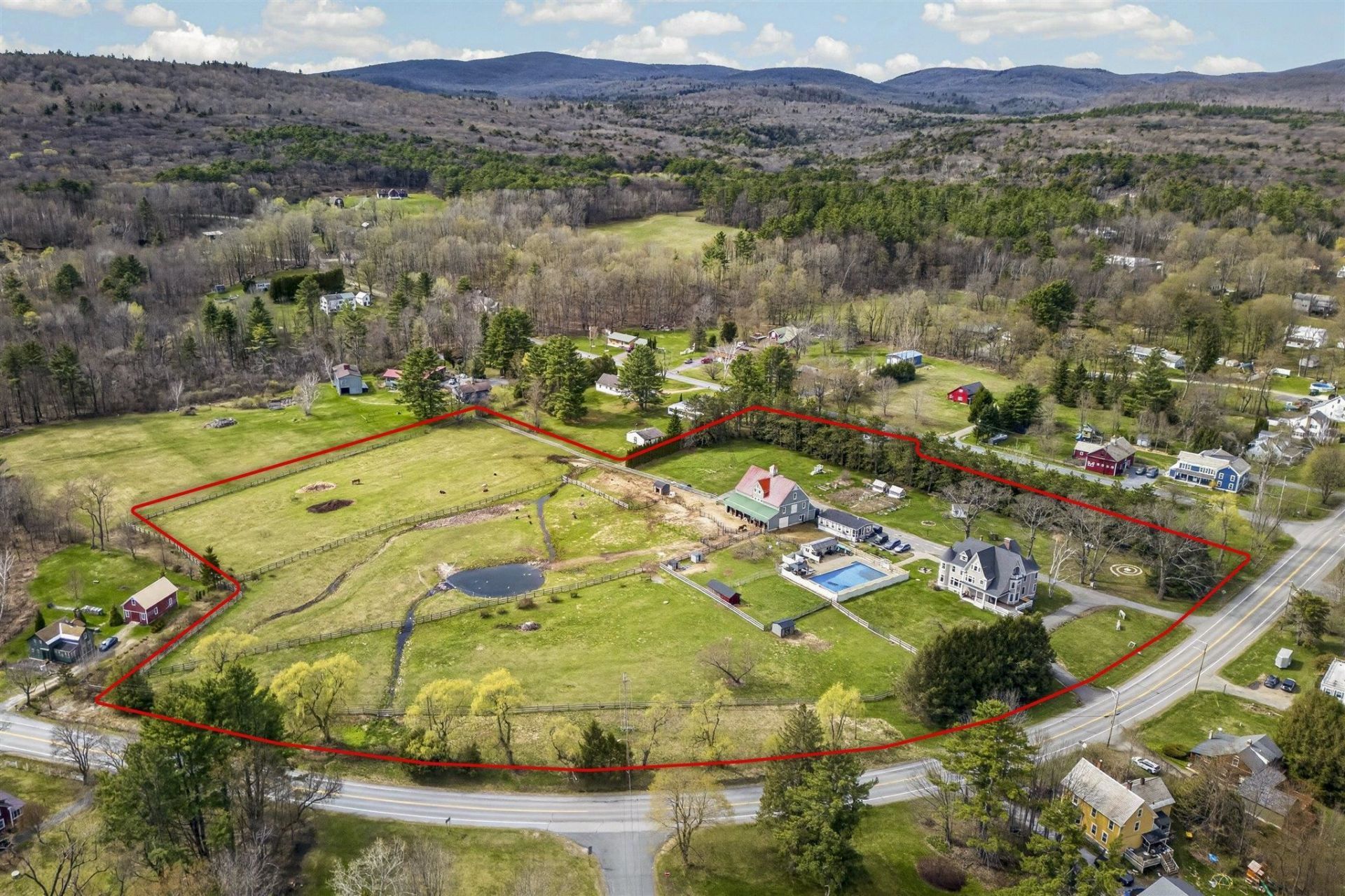 Lot: Country Setting, Horse/Animal Farm, Field/Pasture, Landscaped, Level, Mountain View, Open, Pond, Recreational, View, In Town